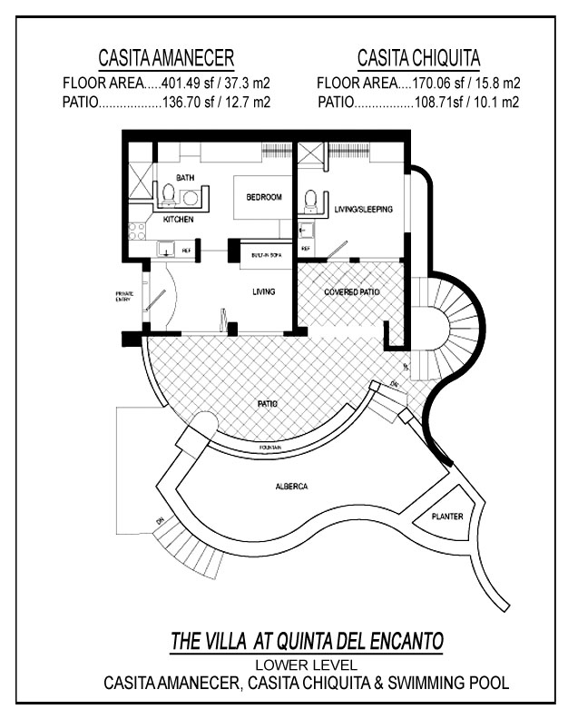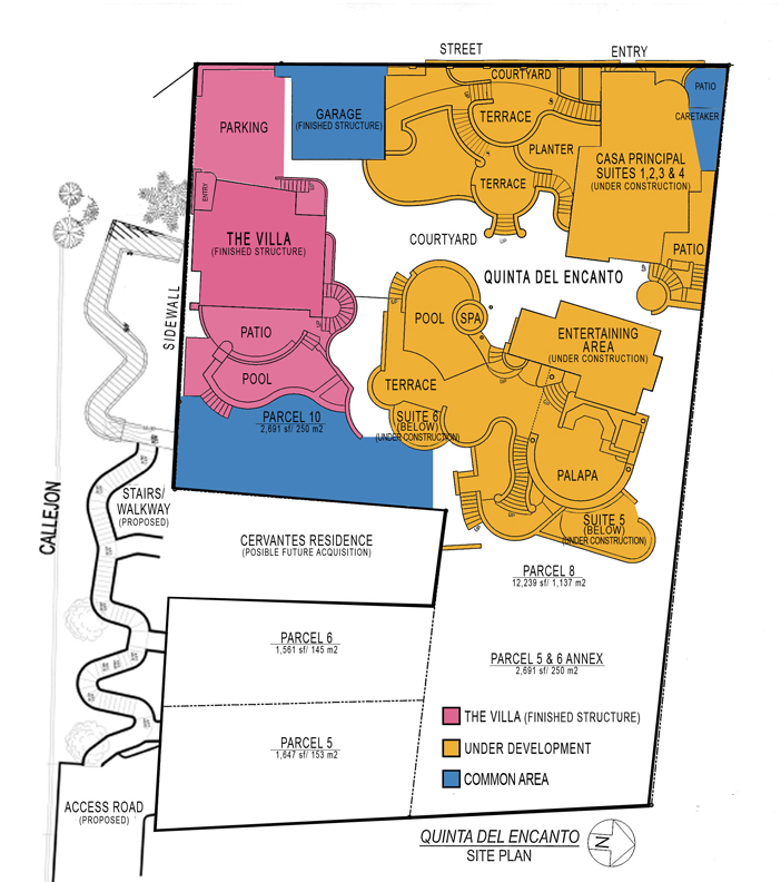 The Villa at Quinta del Encanto has 4 bedrooms, 4 bathrooms and 2 complete kitchens. There are various terraces and balconies including a roof top terrace overlooking the bay. On all three levels plus the roof terrace, the Villa offers privacy and comfort for its guests.